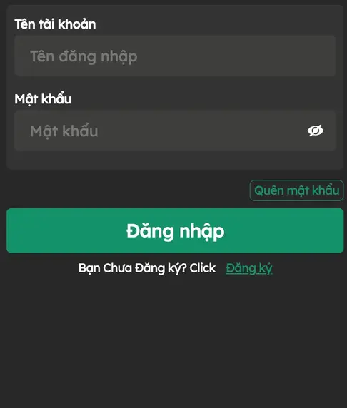 Nhập tên đăng nhập và mật khẩu đã đăng ký.